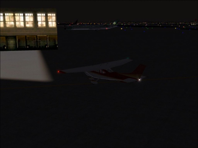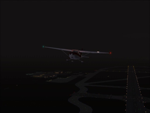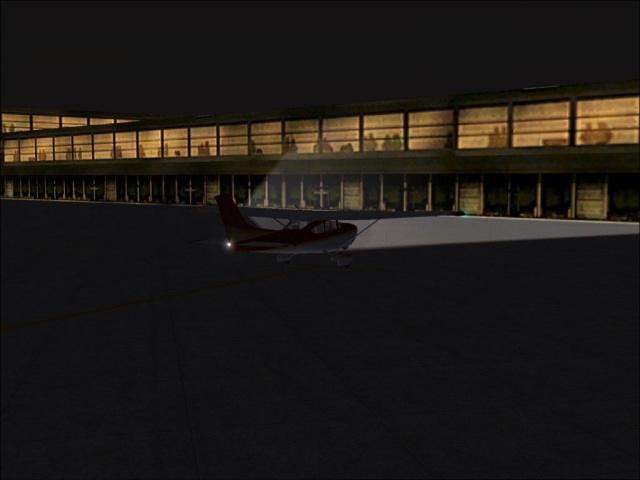 This was another night flight in the IFR. I figured there was nothing much to see between Toronto and Montreal so that was OK. The weather in Toronto was rainy on departure, but I got above the clouds very quickly as they were mostly very low. My cruise altitude was 7,000 ft. following the heading of 075 directly to Montreal. This was relatively short flight, but it was really interesting as I broke another record... I have achieved the ground speed of 171 kn. That was all thanks to the tail wind, as I was still flying at my normal air speed of 120 kn. It was nice to fly that fast though, it made this short trip even shorter. As I suspected, there was little to see during this flight, hence the dearth of screen shots. I guess now that I am flying in this region in the middle of the winter, I better get used to flying in the complete darkness. I am now at 45 degrees north, which might not seem like much, but as we are nearing the winter solstice days are getting to be really short here. When I arrived to Montreal, it was freezing rain and high winds. What a way to greet a guest. Still, I managed to land in one piece and to taxi to the gate without any incidents. This time I only made one shot as I was approaching the airport, and the rest of the time, I was actually concentrated on flying (landing), so it really went smooth. As a side note, I enjoyed the airport in Toronto where you can see people (well shadows) inside the terminal. Nice touch indeed. |