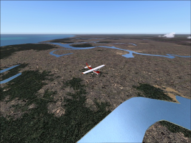 It is early Saturday morning and I am on my way to the next stop on my long journey, Yaounde. The capital of Cameroon, Yaounde, is located 124 miles inland, Northeast from the coast. I flew directly from Cotonou to Yaounde following the heading of 111. On my way to Yaounde, I flew over the Niger River delta. After snaking through the African continent for more than 2500 miles, the Niger River meets the Atlantic ocean in the middle of the Nigerian coast creating spectacular delta. Even from 11,500 ft. I was able to capture only a small part of it on my screen shot. That is how large this geographical feature is. It is not until you look at the image of the Niger river delta from space (by NASA), that you get the feel for how amazing it really is. Another tourist attraction on this leg of my trip, was the Mount Cameroon. It is one of the highest peaks on the African continent, standing at 13,451 ft, as well as one of the most active volcanoes in Africa. Last time it erupted was in May of 2000. The approach and landing at Yaounde were more less uneventful. I proceed to refuel my plane and create a flight plan for the next part of the trip. |
