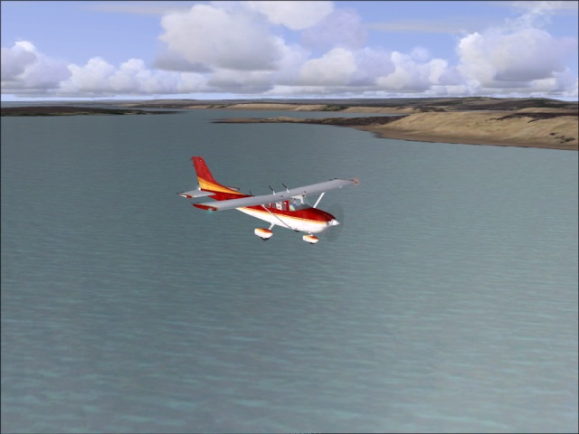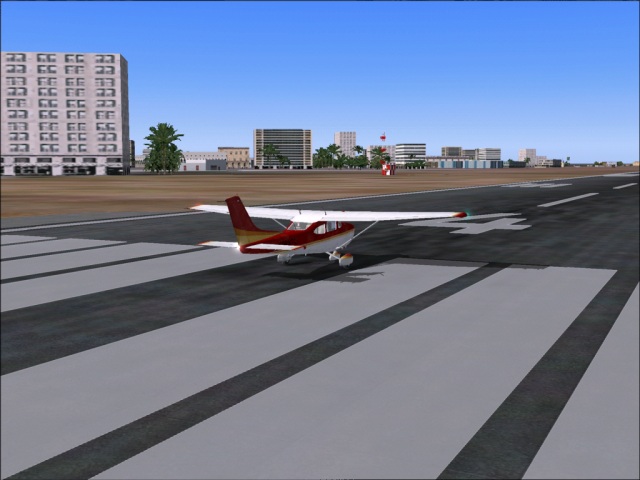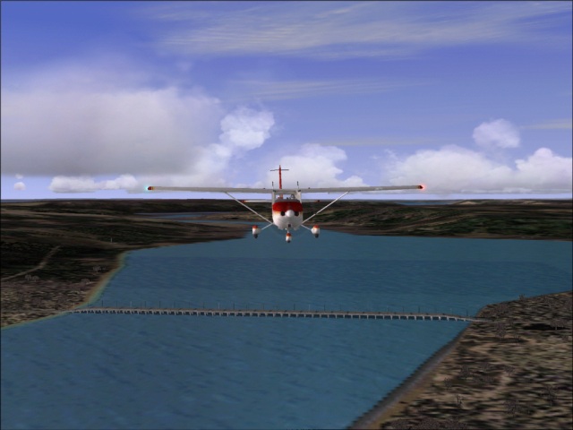 I did not waste any time, so my stay in Ouagadougou was very short. I was there only long enough to pig out at Sonic, create the flight plan and refuel the plane. I am not sure why, but I love dams. I am very impressed by the engineering marvel they represent. Hence I've decided not to fly straight from Ouagadougou to Cotonou, but to make a detour over Lome instead. That way, I went over the Volta Lake and the Akosombo dam in Ghana. I got worried when the weather over Ghana started to get bad as I flew through some thunderstorms, but by the time I was over the lake, the weather cleared up. Another good thing was that I started my flight very early this morning (before 6 am) so I was able to actually see the Volta Lake. I got there just in time, only minutes before the sunset and made several nice pictures. It was very disappointing though that the Akosombo dam is not in the FS2004. I was looking forward to checking it out. I just might have to travel there the old fashion way (in the real world) in order to see it. From the place where the dam should be I continued towards the Lome, and then to Cotonou. Only minutes after flying over the Volta Lake the sun was below the horizon, so I do not have any pictures of Togo. I have only the standard approach and parking ones from my destination airport in Benin. |