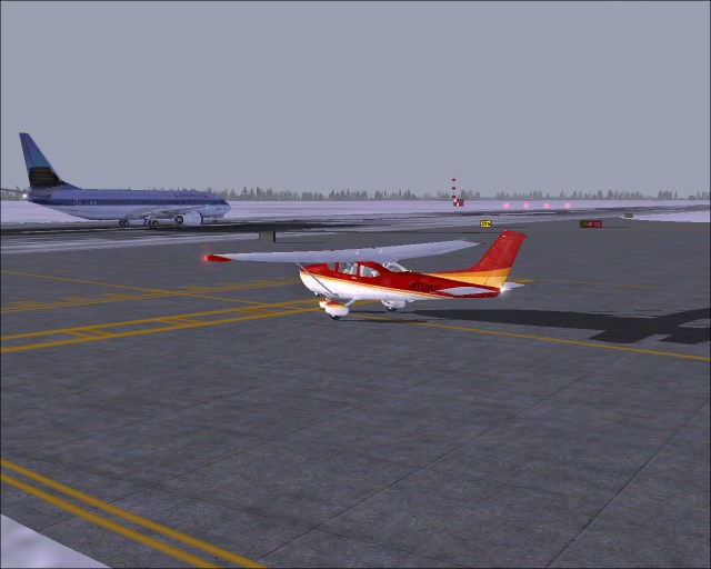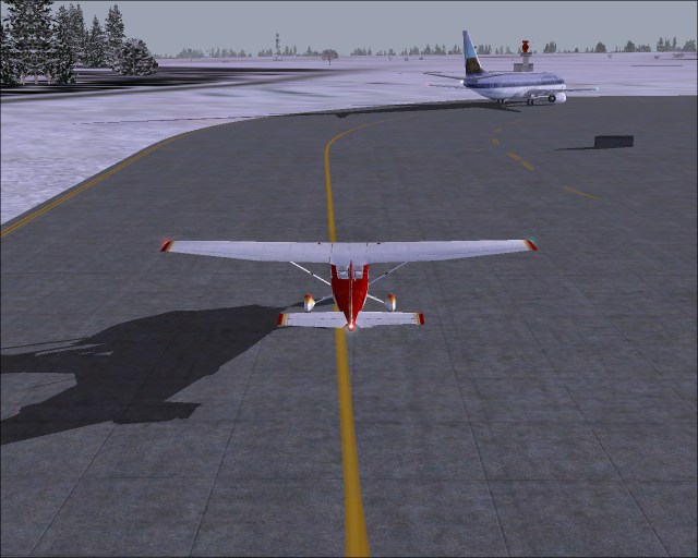 At around 2:45 pm local time I was ready to depart towards Moscow (no I did not land on the Red Square). I have made slight change in my flight plan and decided to take a refueling stop in Helsinki. Although, that increased the overall distance, I figured it was safer that way (Helsinki being almost exactly half way). Sure I can fly 900+ miles without refueling, but just barely. There are several upcoming flights that are longer than 900 miles, and in most cases there aren't any airports on the way at which I can refuel. I guess I will have to be really careful and conserve fuel, to avoid having to land on a remote road somewhere. I wonder if they have 1-800-AAA-HELP in Russia? "AAA operator, how can I help you?" "Hi, I'm on the country road 309, some 400 miles north of nowhere, towards the middle. Can you send someone with about 50 gallons of AvGas?" "Sure, Bob's towing service will be there in 10 minutes". Yeah right. As I was approaching Helsinki airport the weather started to get worse, and my plane was bouncing all over the place like a drunken mosquito. I was cleared for the approach to 4R which was quite convenient (as my heading was 050). I did not use the ILS even though it was available as I was not sure how I would be able to revert to the Helsinki – Moscow leg that was programmed into my GPS. I guess I should figure those things out at some point. It was interesting that while my thermometer was showing 52 degrees F outside there was a lot of snow on the ground. I checked with Ari and he told me that indeed, there is no snow in Helsinki now, so we decided it was yet another bug (or just a bad guess) in the program. Anyway, I found the refueling station, topped off my tanks, requested clearance and few minutes later I was back at 4R waiting in line for a takeoff. From Helsinki to Moscow, I was following the heading of 115 at the altitude of 6,500 ft. enjoying 20 mph tail wind. That part of the trip was really not very scenic, so I did not take many pictures. That is all for now. I will try hard to fly more often and maybe even return back to Salt Lake City this year. |