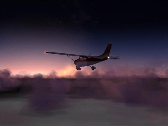 Despite some serious setbacks (Gnome on my Linux does not work any more), I was still able to continue my journey today. I do not know why is Gnome kaput (might have something to do with me incidentally hitting the off switch while the computer was on - ouch), but I am learning to like KDE. It is time for me to upgrade to the newest and the latest anyway, so I will not really bother fixing it. Mandrake 10.0 is almost out and I will just do fresh install of that. But, back to flying. At 04:30 local time, before the dawn, I was ready and took off towards the east coast of Africa. My next destination Inhambane, the city on the coast of Mozambique, is more less due east from Gaborone (heading 101). The distance covered on this part was about 600 miles so this flight took some time. My automatic plan creator suggested I should fly at 11,500 ft. so I chose 11,000 just to be a rebel. There really aren't any peaks that are that high in this part of the world. The storm was over by the time I was ready to leave Gaborone, only some clouds remained. About one hour into the flight the skies mostly cleared and I had great view during the rest of the flight. The scenery was not all that spectacular, but I still took few shots here and there (mostly of Drakensberg mountains). The approach to Inhambane was routine and so was landing despite the thick fog and the lack of the ILS (and the tower for that matter). I am feeling more and more comfortable with this plane (well as long as I am flying it in the simulator). |