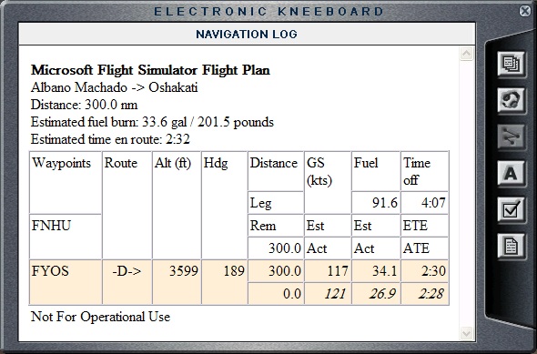 Flying two days in a row... I might even finish this trip before the year 2020. Same as yesterday, I started at 4 am local time. It was of course dark but the sun came out as I was getting closer to my destination. Flight from Huambo to Oshakati in Namibia was just over 2 hours long and it took me over the highlands of Angola and Namibia. That region is very interesting indeed. It is very high plateau, over a mile high at some places and it is relatively flat. There are some higher peaks here and there, and some places that look more like mountains, but it is mostly flat. This cool region covers most of the southern African Continent, it stretches from Victoria lake on the north, all the way to the southern tip of the continent. I really was not aware of this geographical feature before. I am really learning so much during this trip. I have obligatory screen shots of today's flight included below, but they really are more less following the same pattern. Pre-flight check, takeoff, approach and landing. I guess I am not very imaginative to always think of something different. Of course in addition to that, there are also images of cool places I flew over as well (if there were any). After the takeoff (picture of which you will find below), I started a slow climb to 10,500 ft, and set the heading to 190 which took me directly to Oshakati. As I mentioned, the flight was just over 2 hours long, and did not take me over any photogenic places. I guess, most of this planet is uncool (even though this is geographically interesting place) and not screen shot worthy. I have noticed the same thing on my road trips (think Midwest). As many times before, the approach and landing were without problems. I just know I will get overly confident and will die in a fiery crash one of these days. It really would suck though, as I would have to start over. I better be very careful. |