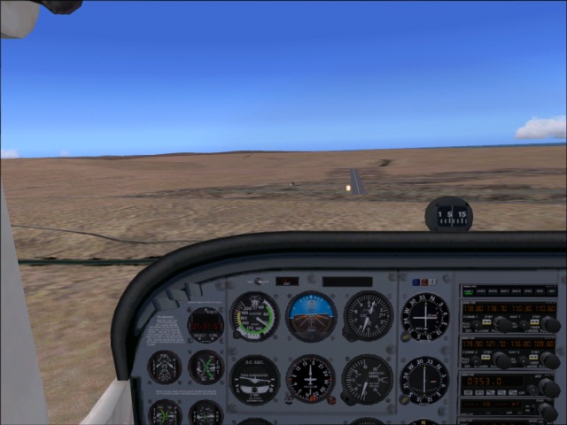 Here I am, flying yet another night in the row. I am on the roll. This flight was a bit longer than previous three, it is 400 something miles. My destination, Aleksander Bay, is located on the Atlantic Ocean, just south of the Namibian border. The direct route from Windhoek to Aleksander Bay was following the heading of 206 which is what I did. I stayed rather high at 10,500 ft. throughout the flight as I wanted to make sure to avoid hitting anything. Remember, these are still the highlands. The airport at Windhoek was at about 6,000 ft above the sea level. Once more, I started really early in the morning local time and watched the sunrise on my way there. No screen shots this time. I think I had plenty of those already before, so I will spare you new ones. And, once more there were very few interesting things on my way, actually there were no interesting things on my way down, hence very few pictures. |