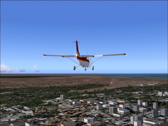 Today's was a very short flight. I was glad to finally break away from the "weekend only" mode and start flying more often. Partially that is because I will take a break this coming weekend and not fly at all, so I will try to complete few legs this week, before I leave town. The exciting thing is that this flight will put me over the one half of my trip around the world. As a matter of fact, half way to Luanda, I will cross the half way point (by number of legs, not by distance). I am actually not sure where would the one half point by distance be. I started very early local time (4 am local, 9 pm Salt Lake City time) so it was still dark. I did get to enjoy the great sunrise during my today's flight, which also means that the approach and landing were done during the daylight. Not too bad. After taking off, I climbed to 6,500 ft. which was the altitude suggested by the flight plan generator and that seemed reasonable to me. The heading of 212 took me straight from Kinshasa to Luanda. There were no scenic detours or sightseeing this time. |
