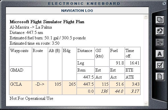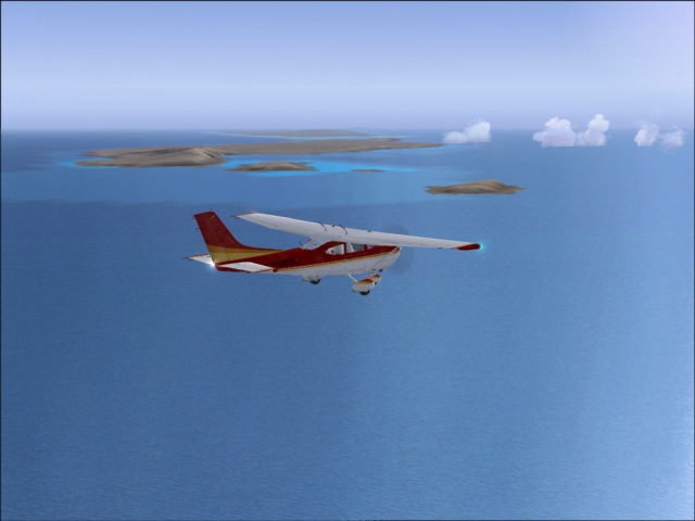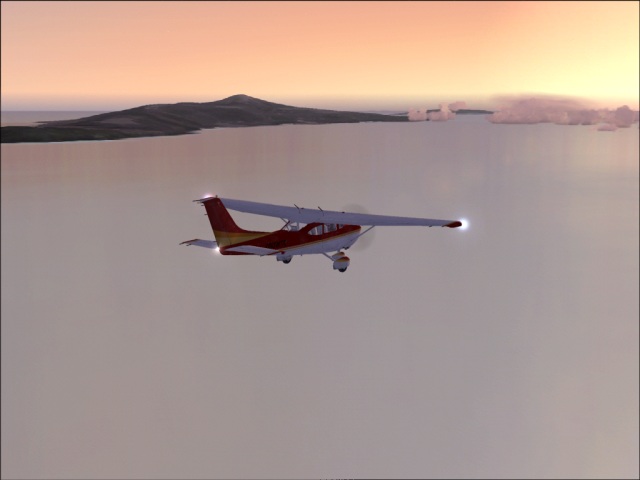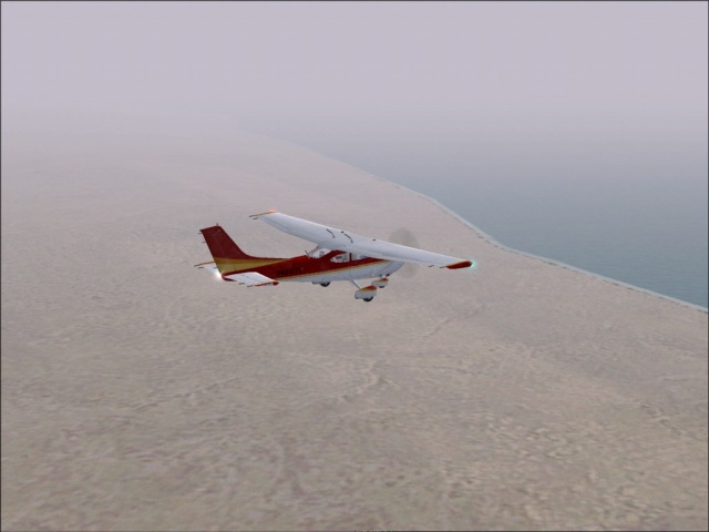Not wasting any time, I got ready, created a VFR flight plan to La Palma, and was on my way. Total time spent in Agadir was under 20 minutes. I am sure that it would take longer than that in real life. Anyway, just as during the approach, the Agadir airport was enveloped in fog. I took off climbed to 8,500 ft. and set the heading to 265 directly to La Palma. This whole flight was over the Atlantic, so there was little to see. Still I did manage to make some interesting shots as you can see bellow. It was interesting to see the beach, where Sahara meets the Atlantic Ocean. I have not been at this one, but I have been at the Northern Africa at the Mediterranean coast of Sahara. It looks just like this. I could even see the algae on the beech as I was flying over. I assume that is correct, as the beach on the North had them as well. Once over the Ocean, I took a photo of the coast and the Atlas mountains in the distance, behind me. I have of course chosen to fly to the island that is the furthest away from African continent, La Palma. I was able to make few screen shots of some of the closer islands (Lanzarote and Tenerife), but the night fell before I got to La Palma, so there are no shots of it. So, that was all the excitement for this flight. After landing at La Palma airport, I parked the plane, and called it a day. |