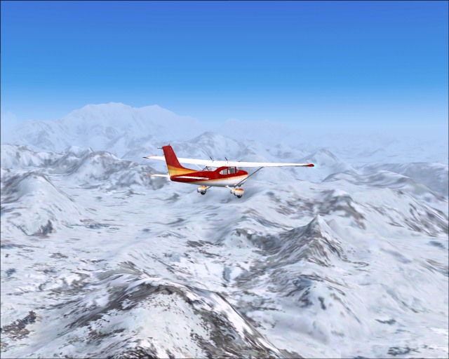 After a very brief rest in Wales, I took off towards the Anchorage. I was very lucky with the weather over the Bering Strait, and in Wales. I've heard that this area can have very high winds and bad weather. It is better in the summer, but still I did not expect to be this lucky. After the takeoff, I climbed to 9,500 ft. and set the course 098 directly to Anchorage. First part of the flight was over the relatively flat terrain, while the second part took me over the Alaska Range. I flew close to Denali National Park (minor detour was needed) and took a picture of Mt. McKinley, the highest peak in North America. The Anchorage international airport was very busy (I guess it is a tourist season after all), but the approach and landing went without any problems. I parked the plane and left it there until tomorrow afternoon. |
