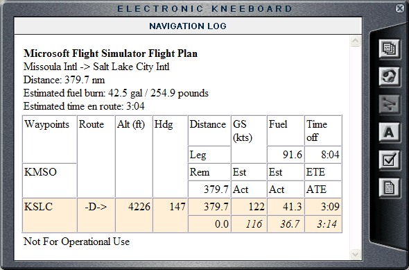 Well, here it is, the final leg of my very, very long virtual trip around the world. I've started on November 2nd last year, and now, seven months and one day later I am done. I have accomplished what I wanted to do, and that is to get a much better idea of the geography and the distances on this planet we call the Earth. During this trip I've visited many places , some of which I hope to also visit in real life one day and some of which I am sure I will never be able to. Some of the places I've visited virtually I do not want to go to, at least until the oppressive governments that are in power now, are gone. This around the world trip was a huge drain on my free time and I must admit that few times, I've regretted ever starting it. But, once I got started, I had to finish. I hate not finishing things that I start. Now that it is over, I am glad I did it I guess. I am pretty sure I will never do anything like this again though. These web pages will stay on my web site for a while as guidance, or maybe as an encouragement to others who might be crazy enough to try something similar. A word of advice though... don't do it, unless you really have a lot of time on your hands :-) My flight today was also a very emotional one as I flew over the area I used to live in, The Bitterroot valley. I really have fond memories of that place. I know that area so well, that I was able to navigate just by looking through the windows and did not need my GPS at all (OK, I've used it for the ILS landing). That also says something about the quality of the scenery in this program. From Missoula, I flew to Bitterroot valley first, then over the Chief Joseph pass into the Big Hole, over Wisdom and then southeast towards the I-15. From there, I just went directly south to Salt Lake City. I took some pictures along the way, but mostly just enjoyed the view. Also, I think it is very appropriate that I've arrived home for the July 4th weekend. Just in time for the celebration and fireworks. I've landed on the Salt Lake City international airport and shortly after left my plane at the GA parking. It will probably be a while before I use this program again. It was fun, but now I need a long break as well as time to do other things. Over and out. |