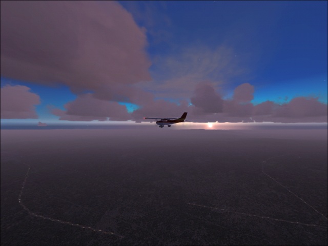 Since I arrived in Tucson early, there was enough daytime left to complete another leg of my long trip (or so I thought). From snowy Salt Lake City to sunny La Paz, all in one day! According to The Weather Channel, in La Paz at this moment (15:00 Tucson time), is mostly cloudy and the temperature is steaming 90°F. Ouch! I hate hot weather. I've decided to fly directly, heading 164, all the way to La Paz. No sightseeing this time. For the first 70 miles or so, I was at the 9,500 ft since I had to cross mountains (pretty ones, see bellow), but then I was able to drop down to much more comfortable 6,000 ft for the remainder of the trip. I have never been to Mexico before so this is completely new experience for me. It is always exciting to travel to a new place even virtually. By the time I got to Baja California it was already dark and I could not take nice pictures (read screen shots). Serves me right for not doing research beforehand I guess. I did get few nice shots of the sunset thought as I was approaching the Baja. Take a look at that shot, and note the cars (headlights) on the highway 15 below me. Kudos to the Flight Simulator programmers, such attention to detail is admirable. It was really interesting to see the coastline of the Baja though, even in the dusk. Once I got over the water, I had tail wind, and my ground speed was over 130 knots. Approach to La Paz in the dark was pretty spectacular indeed. I managed to do a good landing, parked the plane at the gate, shut down the engine and turned the lights off. This time I did remember to take the image of the flight log after the flight. |