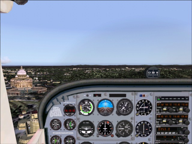 Now that I am in Europe, the time difference really makes it more and more difficult to get any flying done during the daylight hours. The one thing going for me, is the fact that we are now past the Spring Equinox, so the days are rapidly getting longer. I started this flight early, just before 1 am local time. It is a bit on the longer side (although nothing comparing to some of the flights I will have to do later). The Athens airport was busy as if it was noon. It took me a while to talk to the ATC, get clearance, taxi into a position and then finally take off. Once in the air, I set the heading to 294, direct route to Rome, Italy. Not too long after the takeoff I had to cross surprisingly high Pindus Mountains. I had to fly at 12,000 ft in order to clear the highest peaks there. OK, maybe that was too high, but as they say, better safe than sorry, especially in the case when sorry means being a flattened spot on the side of the mountain. Surprisingly, the good winds followed me almost all the way to Rome. That does not happen all that often. As a result, I did great on gas. Sun caught up with me 30 minutes before arriving to Rome. Once more, I resisted making yet another (or ten) sunrise picture(s). I did make few pictures of Rome though, which BTW I am sure looks nothing like that, as well as the obligatory ones of the final approach and the parked plane at the end of the trip. Bandwidth be damned. The flight over the Ionian Sea was not very exciting, being night and all. The only comfort was that soon I will be able to do all the flying during the daylight. The odd thing was that the weather over the city of Rome was clear, but over the airport it was very foggy. Only then I understood why the ATC guy was insisting on the airport being IFR. I still landed without bouncing even once. Grand. |