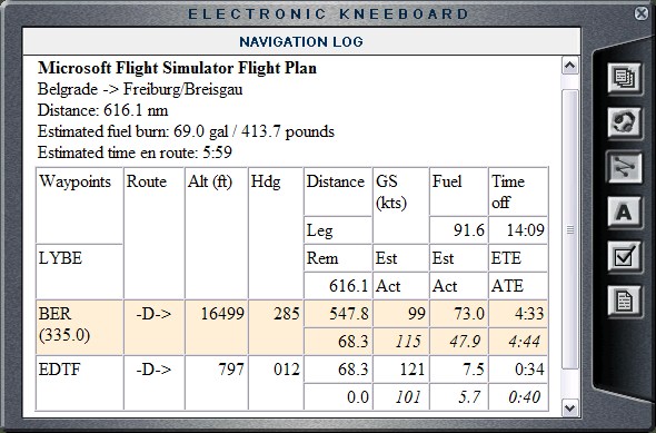 It has been several weeks since my last flight. Once again I was plagued by computer problems. This was the second time in 2 years that I had power supply failure on my home computer. What is up with that? I also used this opportunity to replace few more parts (mobo and CPU), and then decided to reinstall the OS as well. It has been a year since it was installed and it was time for a cleanup. Anyway, things seem to be stable now, my computer is working fine, most of the programs have been installed and I am ready to continue my trip. The weather in Belgrade was good, sunny and without much wind. I got ready, created my flight plan and took off around 2 pm local time. Before setting the heading towards Bern, I had to circle around the city once, just to confirm to myself that it does not look anything like the real thing. Actually, from a good distance, it looked somewhat OK, two rivers, small island in the middle where they meet... even the city outline seemed recognizable. Once you get close however, there aren't any features that seemed familiar. Still, it was fun to visit the city where I was born. It's been very long time (12 yr. or so) since I've visited. After the brief city tour, I climbed relatively high (12,500 ft.) and followed the heading of 285 directly to Bern. I did not land there, just flew over and took few pictures. Another reason I waited this long to fly next part of my trip was that I wanted to cross the Alps during the daylight. Flying over the huge mountain range in Cessna 182 is no small task, so it is a good idea to do it in a good weather during the daylight. It would really suck if I crash now, after I got this far. Upon successful crossing of the Alps and flyover Bern (not to mention Interlaken), I turned to 012 towards Freiburg. Shortly after I was on the ground and started preparing for another flight. |