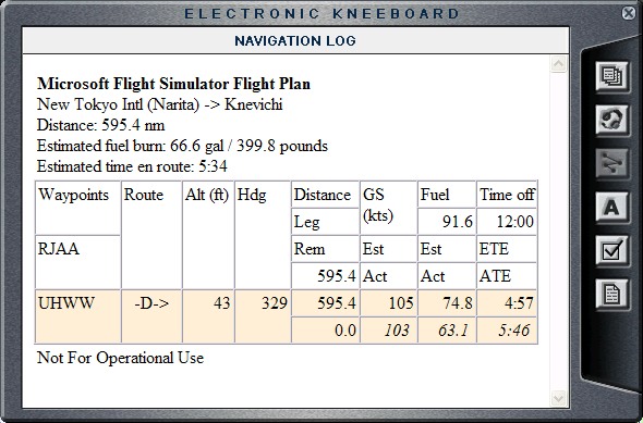 Today I flew back to Russia. I had a late start as I was busy this afternoon/evening, so the flight stretched late into the Salt Lake City night. It was still daylight when I got to Vladivostok though. After flying across the Honshu island, I was over the Japan Sea. I must say that I was not aware of how huge the Japan Sea really is. I thought Japan was much closer to the Russian mainland. I guess that is the whole purpose of this trip, to get the idea of how does this planet look like, what are the main features and to get the idea of relative distances. I was flying at 11,500 ft. following the heading of 328. I did not have very good winds so I ended up using a lot of fuel. It was not critical though, I still had plenty left when I landed. As I was approaching the continent, the weather turned for the worse. The turbulence was quite strong. The approach to Vladivostok airport was OK even though strong winds made it hard to stay lined up from time to time. I got clearance for landing at runway 25R which I did, and then left the plane at the gate until my next flight. |