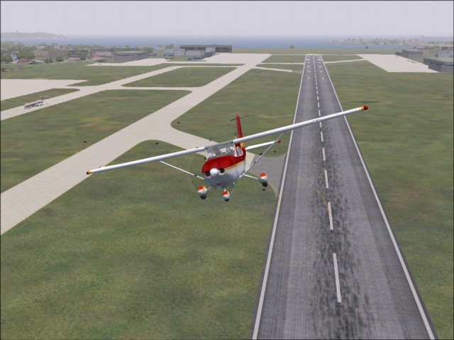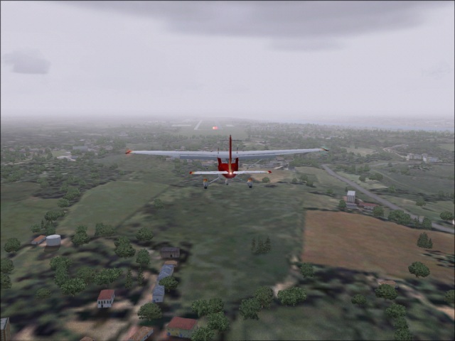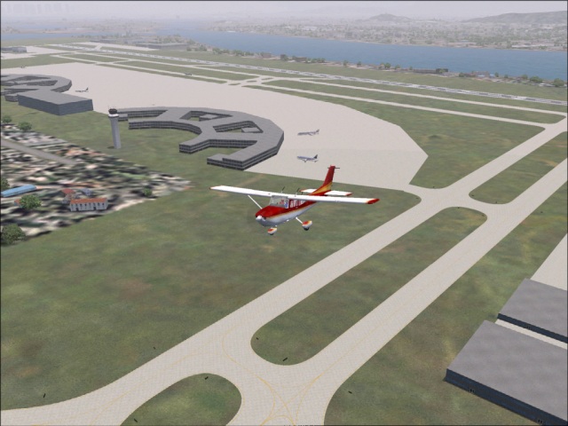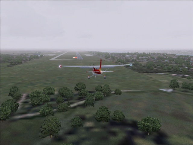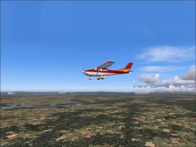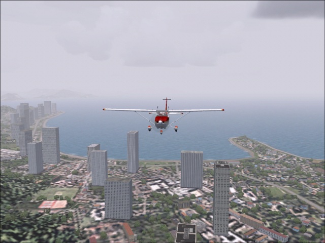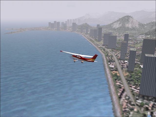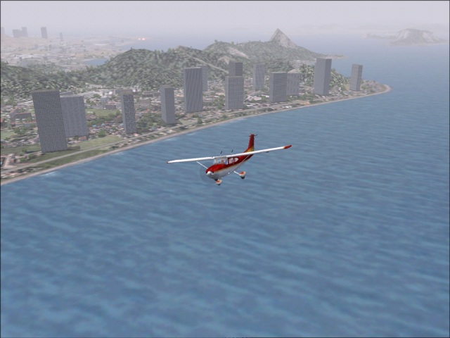I was just saying yesterday that I am having luck with the weather, and of course, today I had to land in a thunderstorm. It was not too bad though, the winds at the ground level were manageable. As I was descending towards the airport the plane was being tossed all over the place, and I thought I will have to abort the landing. Luckily, once I got below 5,000 ft. it got much better. The day started at Rio de Janeiro international airport. Before setting the heading towards Brasilia, the capital of Brasil (Brazil, is spelled Brasil in Brazil) I took the tour over the touristy places in Rio. I did a low altitude flyover above the main beach and the hotels in front of it. It was disappointing though, that the statue of Jesus, one of the best known landmarks of Rio was not programmed into the FS2004. Note to programmers: please add that, and other tourist attractions around the world such as the statues at the Easter Island etc. But as I was saying before, even without those few things, the reality level of this program is just amazing. On my way to Brasilia, I flew over the Brazilian Highlands. I remember seeing the show on Discovery channel about the Brazilian Highlands, and it was gorgeous. Of course, from 9,500 ft. that place did not look nearly as impressive. As I mentioned before, as I was getting closer to Brasilia the weather started acting up, and I flew through major thunderstorm with lightning, high winds and all that. Unfortunately I could not take a screen shot of a lightning even though I tried hard. I was just too slow. Landing was OK, but I did bounce few times, mainly because I was trying to take the screen shots, and land at the same time (excuses, excuses). |