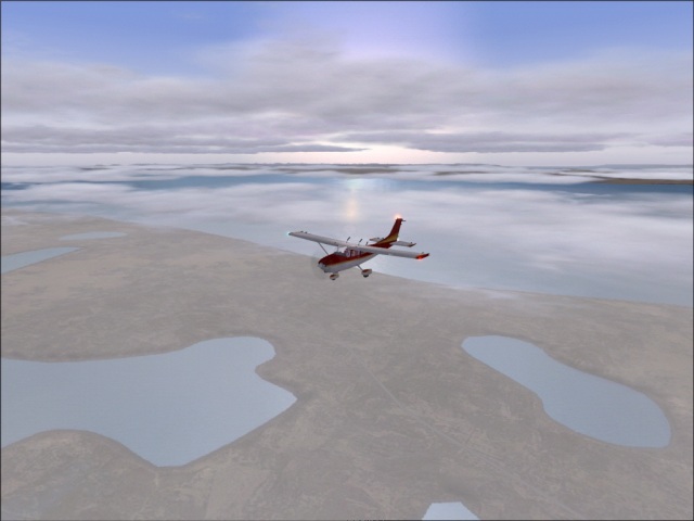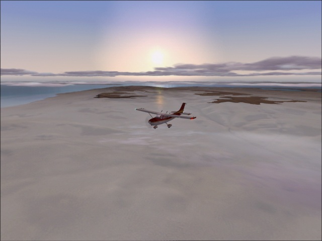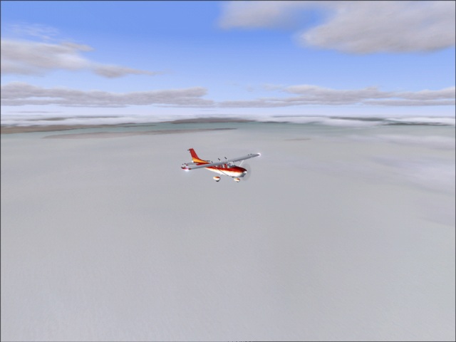 Originally, this flight was supposed to be via Tierra del Fuego (which meant that I would fly from Punta Arenas, Chile to the tip of the continent and then back to Rio Grande, Argentina). However, since I've changed my flight plan, and decided to go to Antarctica, which means I will be passing by that region anyway; there was no point in doing it now. As I was able to start my flight relatively early today, I got really great look at the Strait of Magellan during the daylight. This whole area really seems like a great place to visit, so that just got bumped up towards the top of my list of things to do in the next few years (not in the Cessna though). Without the tip of the continent detour, this was a very short flight, as a matter of fact, probably the shortest flight of the whole around the world trip. Even though I did not fly over the tip of the continent, I did actually go over Tierra del Fuego, which is the island south of the Strait of Magellan (and that is where the town of Rio Grande is located). I managed to get some really nice shots of the area despite some low clouds. My flight was over low lands and it was rather short, so I chose to stay at 6,000 ft keeping the heading of 98. |