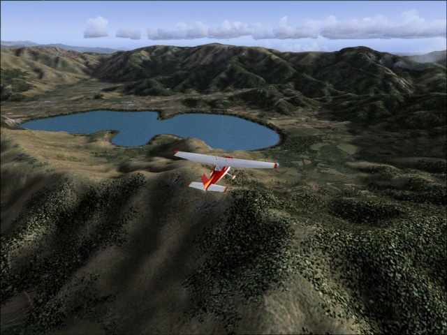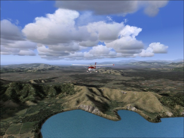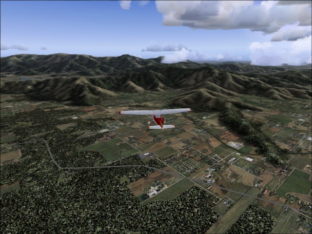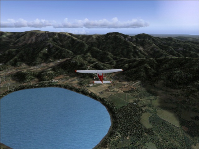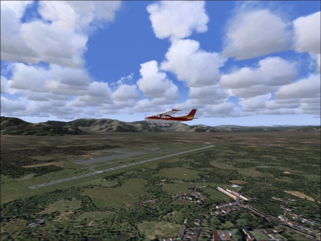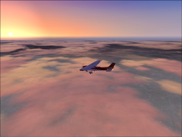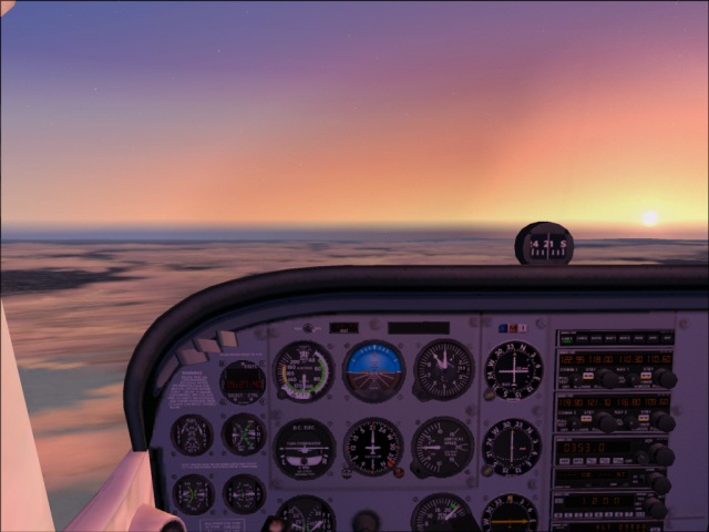 I was not sure if I would be able to fly another leg of my trip today or not, but since I had plenty of daylight left, I felt I should take the advantage of it. So despite the crappy weather forecast (rain and high winds) for Valdivia, I got into my 182 and took off from Santiago International. Earlier, as I was flying into Santiago, the weather was mostly cloudy and I did not get to see much of the scenery. On my way out though, the weather cleared and I was able to check the area out. Of course, that did not last too long as I flew into a large low pressure area some 50 miles south of the city (the bad weather I was talking about earlier). It was only the tail end of the low pressure system, so it was not all that bad. I did find the break in the clouds just in time to enjoy a gorgeous sunset. This part of my trip was relatively simple; I flew directly from Santiago to Valdivia keeping the heading of 188, at the altitude of 9,000 ft. By the time I got to Valdivia, it was already dark (not to mention the rain), so there was nothing much to see, but I will make sure to leave during the daylight as there are many things in the area I want to check out. Here, I got my first try at landing in bad weather (see the image of the final approach below). The weather was not too bad, just some rain and wind and I managed to land quite OK, but as I continue this trip, I am sure there will be much greater challenges to come. |