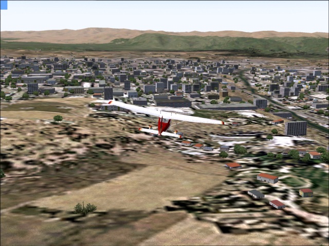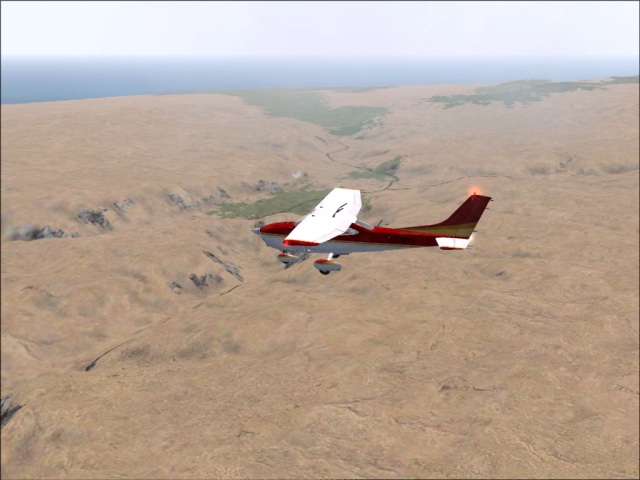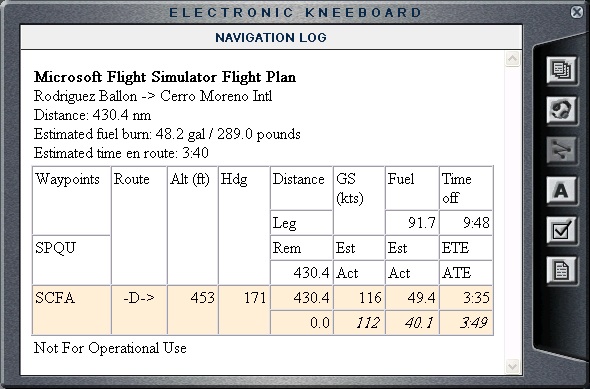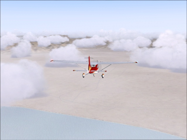 Taking the full advantage of the weekend, I am doing my second flight for today. My stay in Arequipa was very short, less than 30 minutes. I just created new flight plan, refueled, checked the aircraft, and took off. As I thought, the takeoff from Arequipa was challenging. The city is located in the bowl right next to the very high mountains. The bowl opens up on the northwest side (from where I just came) towards the low lands, and the Pacific. Southwest side is bordered by a mountain ridge (over which I had to go) and the East side is surrounded by snowy peaks, a volcano (Misti) and very high ridges. Upon takeoff, I had to fly couple of circles around the bowl, to get up to 12,000 ft. and then I followed the road going Southwest towards the ocean. Once over the mountains, I kept the heading of 171, a direct route to Antofagasta, Chile. Most of the flight was over the southern Pacific, so nothing much to see this time (other than the very cool scenery of Arequipa bowl). Antofagasta is located next to the Pacific in the Atacama Desert. The airport itself (Cerro Moreno International) is at 455 ft. which is a nice change after some of the stratospheric ones I was at during the past few weeks. The landing was OK, only two bounces (OK, I am getting better). |