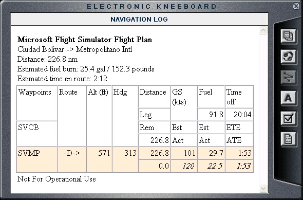 Since this part of the trip does not take me over any cool places (like the previous one), it was OK to fly in complete darkness. This time though, I have chosen to fly IFR which made navigation much easier. My designated altitude was 8,000 ft. and the course 313. Once again I had tail wind, which gave me the cruise speed of over 140 kn. The approach to Caracas was easy since all I had to do was to follow the ATC instructions, and not worry about where the high towers and other planes are. I think I will fly IFR much more often now. I really do have to chose the airports more carefully though, once again I had to land at the small land strip without any lights... That sucked. There was nothing interesting to see, so there are no screen shots either (well only few). Today was a good day, as I got to complete 3 legs of my journey. I am not sure how much I will be able to accomplish tomorrow, so this was really good. |