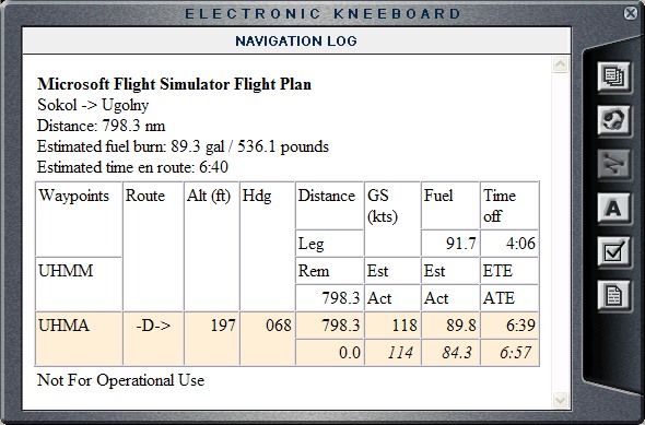 Well, here it is, the part of the trip I was dreading. When I was trying to decide if I can do this whole ATW thing in Cessna 182, I flew from Magadan to Anadyr several times to make sure I will be able to make it. At that time this was the longest leg I had planned, but later, as I was getting more and more confident, I have added few other ones that are as long as this. Still, it was challenging, as The God of The Winds was not on my side today. Once again, I was able to make low fuel warning lamp light up. What a talent I am. Even though I was a bit low on fuel, I did do a proper approach, announced myself, went around the airport, and landed on runway 19. After a brief taxing, I left the plane parked at the gate, and called it a day. Tomorrow will be very exciting, I am going home... |