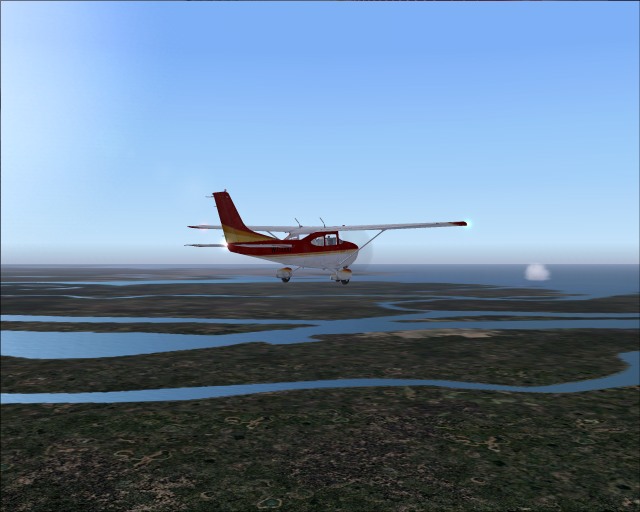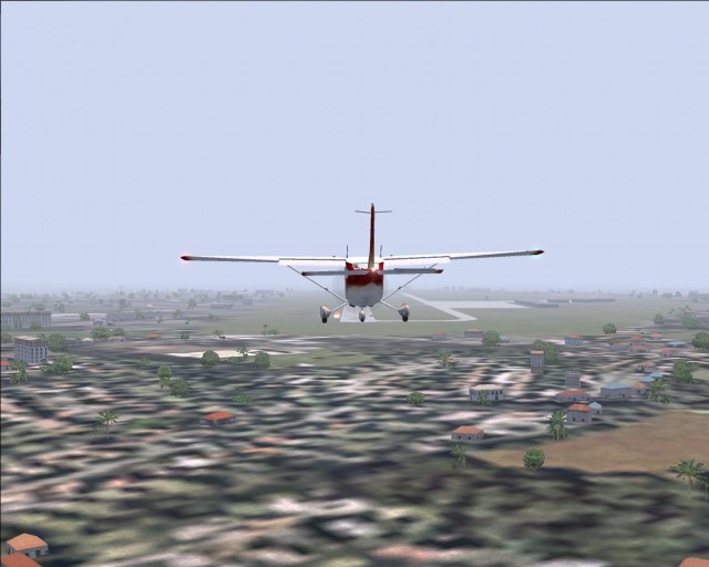 There is a very good reason that I chose science as my occupation and not arts. I cannot think of anything original ever. On every one of these pages, there are pictures of pre-flight check, takeoff, approach etc. At least, here and there I have the images of the interesting geography I was flying over. But back to the ATW thing. I got ready at dawn, and quickly took off from Kolkata towards the Rangoon, Myanmar (CFKA Burma). Since I was flying over the ocean and the lowlands, I was able to stay at the low altitude, 8,200 ft. The direct heading that I followed was 129. Once more, I was lucky with the weather. I guess the monsoon season has not yet started there, otherwise I would probably be in big trouble. I really did not want to stop at countries ruled by dictatorial idiots, even virtually, but then I would have very few places to land at, especially in this part of the world. Burma, also known as Myanmar, once part of the British empire and today a country ruled by a dictator. That must suck for them. I hope that will soon change. The approach and landing to Rangoon (Yangon) were without any problems. I left the plane at the gate until I can continue my trip. Just to make sure that the pilots of the world who happen to fly to Rangoon are not bored to tears, MS decided to put the building right on the runway 10. Luckily it was at the beginning of the runway and was easy to avoid. |