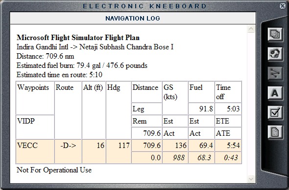 With the first rays of the Sun, I got ready to continue towards Kolkata (Calcutta), India. Today's flight was not really very exciting, I was crossing the flatlands of Indian subcontinent, just below the Himalayas (which I did not see). The weather was perfect, winds calm, and the trip was routine, together with the approach and landing. Other than admiring how nice and green everything below me was (yes I live in a desert, and I like to see green landscape), there was not much to do during this flight. The autopilot was busy, and I was mostly reading. I can now rest and prepare for the next one. Over and out. |