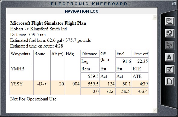 Another weekend, another flight in the dark. At 22:30 local time I took off from Hobart heading north towards the Sydney. I have flown over Tasmania yesterday, and have seen how it looks, so I did not feel bad for flying in the dark today. One of the main reasons for this whole adventure was for me to get familiar with the geography of the world as much as possible, to learn the main features of all continents, to have a good feel of where the mountains are etc. I found out from my past experience that the best way to do that is to visit the place. You can read about the Grand Canyon, you can see the pictures of the Grand Canyon, watch the movies about it... but until you actually go there, you really do not have a feel for how grand it actually is. That was my experience at least. When I went to the Grand Canyon it was overwhelming. So, since it is unlikely that I will get to travel around the wold any time soon, this is the next best thing. But, back to my flight. I was following the heading of 005 at 7,500 ft. directly to Sydney. The airport in Sydney seems to be south of the town, so I will tour the opera house on my way out. Also, I should probably wait an hour or so for the sunrise as well. The day has only started, I will try to get as far as possible. Stay tuned. |