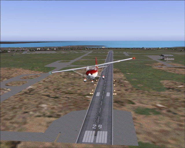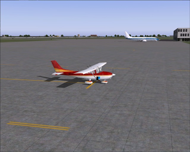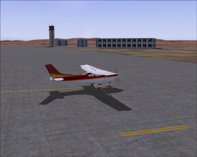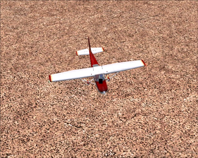 My flight today was just over 700 nm, all of it above the Australian desert. There really was nothing much to look at during this flight. I wish MS programmed kangaroos in the FS 2004 so that I can fly low and take a picture of them... Oh well. I took off from Darwin early morning local time, climbed to 9,500 ft. quickly and set the course to Alice Springs, a town largely known by a giant rock that happens to be near it (but not in FS 2004, so do not expect pictures). The heading of 161 took me directly there. Once more the weather was completely clear, which I understand is not unusual in this part of the world. The (ILS) approach and landing were without any problems. I left the plane parked at the airport waiting for the next flight (hopefully tomorrow). |